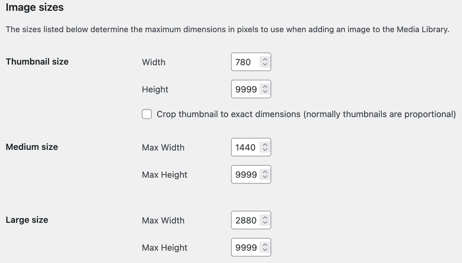 The Theme natively creates all the relevant image sizes for your site. However, you might want to create thumbnails for your galleries or larger product images for your shop. You can set them up under Settings » Media in your WordPress Administration.