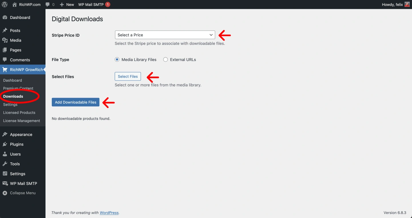 - Back in WordPress, go to RichWP GrowRich → Downloads