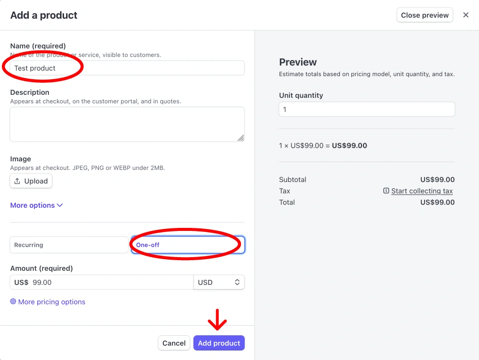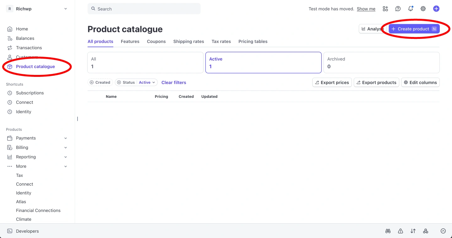 - In your Stripe dashboard, create a product: