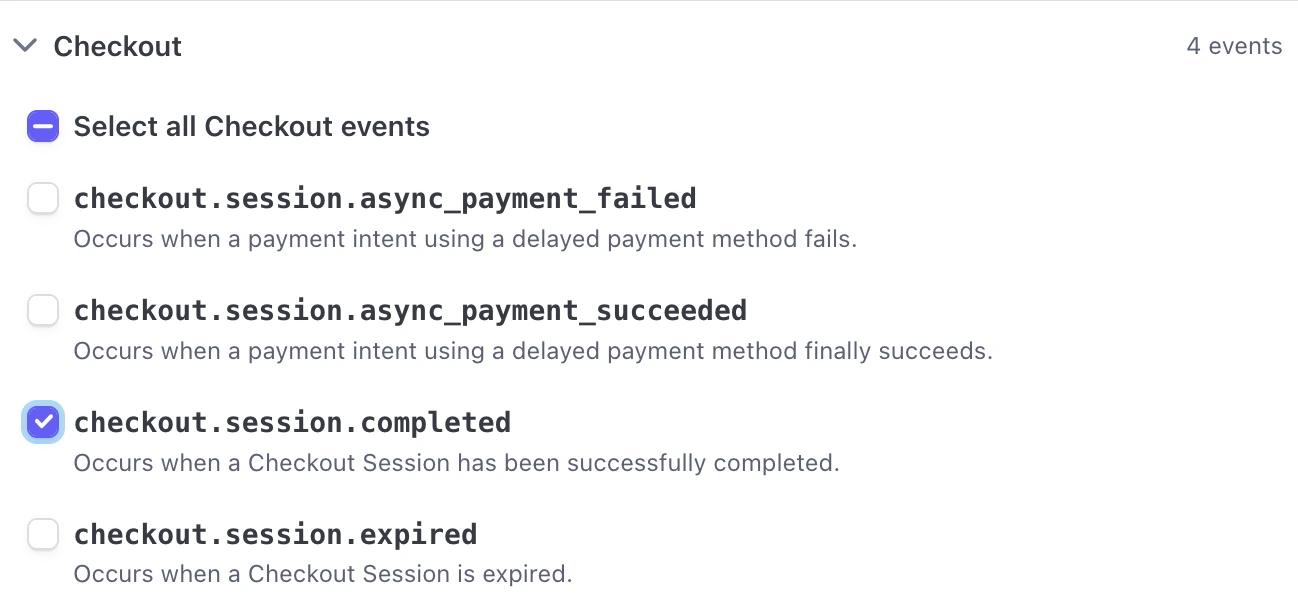 »checkout.session.completed– When one-time purchases are completed - Invoice »